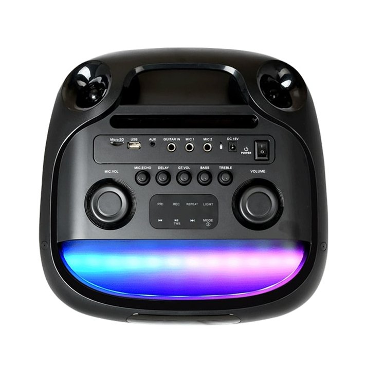 اسپیکر بلوتوثی مناسب برای سفر، فضاهای باز و مهمانیهای طولانی – قابل حمل – طراحی مدرن همراه با نورپردازی RGB – اسپیکر قابل شارژ مجهز به باتری 9000 میلی آمپربا نگهداری 4 الی 8 ساعت – دارای 2 میکروفون بی سیم – دو درگاه میکروفون – دکمه روشن / خاموش – استریوی بیسیم واقعی TWS – امپدانس 4 اهم – واحد درایو: "1 + "10×2 – فرکانس میکروفون بی سیم 677 مگاهرتز / 660 مگاهرتز – حساسیت ورودی 96 دسیبل |