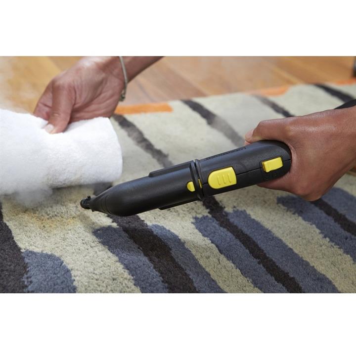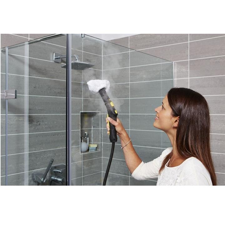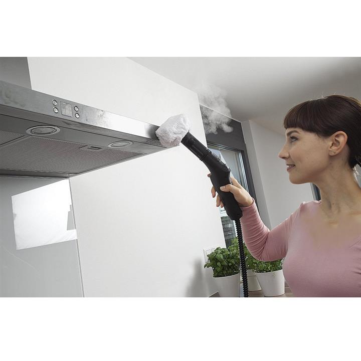 بخارشوی کارچر SC 3 EasyFix با توان 1900 وات، فشار 3.5 بار، مخزن 1 لیتر، قفل کودک و کارتریج رسوب زدا، قابلیت شستشو و ضدعونی کردن یک سالن 75 متر را دارد.
