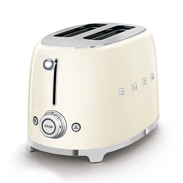 توستر 2 اسلایس کوچک اسمگ TSF01CR محصولی بسیار لوکس و پرکاربرد از برند معتبر اسمگ Smeg است که با بدنه ای به رنگ کرم براق و جلا داده شده نمای آشپزخانه شما را زیباتر می کند و به دلیل عملکرد عالی و کیفیت بالایی که دارد، مورد استقبال مشتریان و خریداران خود قرار گرفته است. توستر 2 اسلایس کوچک اسمگ TSF01CR که در رنگ های شیک و متنوع به بازار عرضه شده، برای خانواده های کوچک و متوسط ایده آل است و لذت خوردن نان گرم و تازه را به اعضای خانواده هدیه می دهد.