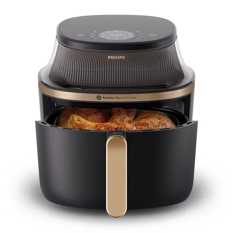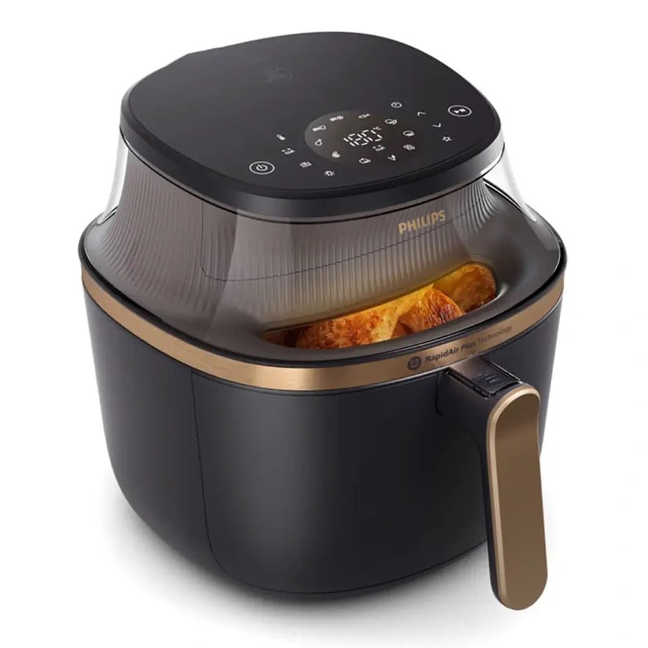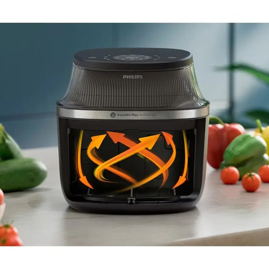 سرخ کن کم روغن و بدون روغن 7 تا 8 نفره – دارای 12 برنامه – پخت با تکنولوژی گردش سریع هوای داغ – تکنولوژی Rapid Air Plus (جلوگیری از بو در هنگام سرخ کردن و گردش سریع هوا) – قابلیت تنظیم دما از 40 تا 200 درجه سانتیگراد – پنل لمسی دیجیتال با نمایشگر LED – قابلیت گرم نگهدارنده – سبد کشویی – کاسه مربع شکل – دستگیره خنک – بدنه عایق سرد – قابلیت شستشوی قطعات در ماشین ظرفشویی – کلید روشن / خاموش – پایه ضد لغزش – پنجره شفاف برای کنترل کامل روند پخت – کابل برق 1 متری |