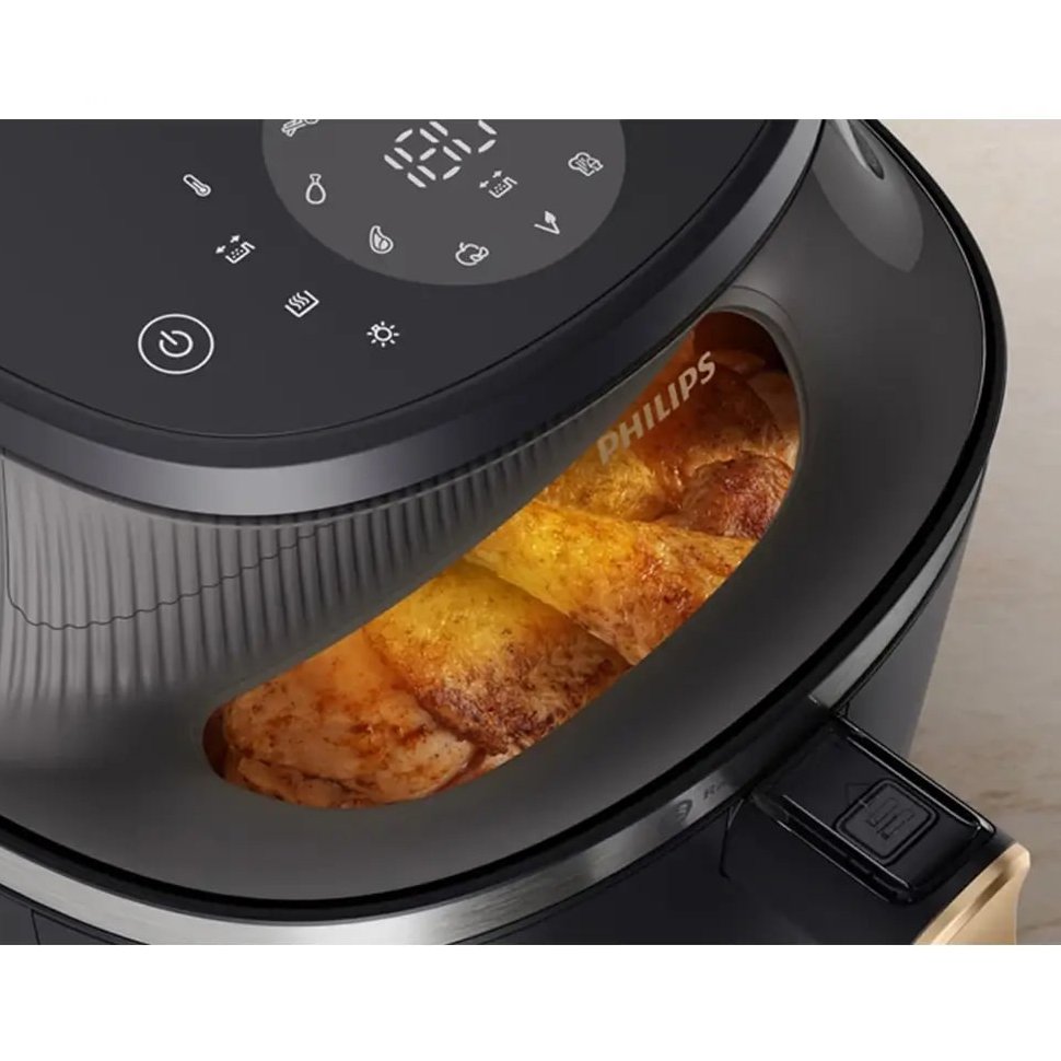 صفحه نمایش LED لمسی سرخ کن فیلیپس NA342 امکان مشاهده و تنظیم مواردی مانند نوع برنامه، زمان باقیمانده، تایمر و … را برای کاربر فراهم و با بوق هشدار دستگاه به طور دقیق پایان فرآیند پخت را اعلام می کند. درب شیشه ای دو جداره و شفاف این سرخ کن از امتیازات مثبت آن به شمار می رود و کاربر می تواند فرآیند پخت مواد غذایی را به صورت کامل مشاهده و به راحتی کنترل نماید.