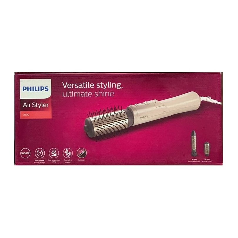 سشوار برس دار چرخشی فیلیپس BHA710 دارای موتور DC 1000w، سیم گردان 360 درجه، فناوری تولید یون، سری متمرکزکننده، سرعت 2 حالته، دمای 3 حالته و سری 30 و 50mm است.