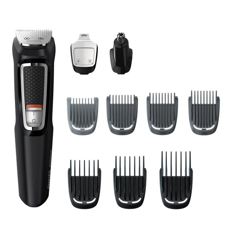 ماشین اصلاح فیلیپس MG3740/40 مجهز به تیغه فولادی، باتری نیکل هیدرید فلز، 13 قطعه شامل 7 شانه و 3 سری، قابلیت استفاده به صورت بی سیم و موتور قدرتمند می باشد