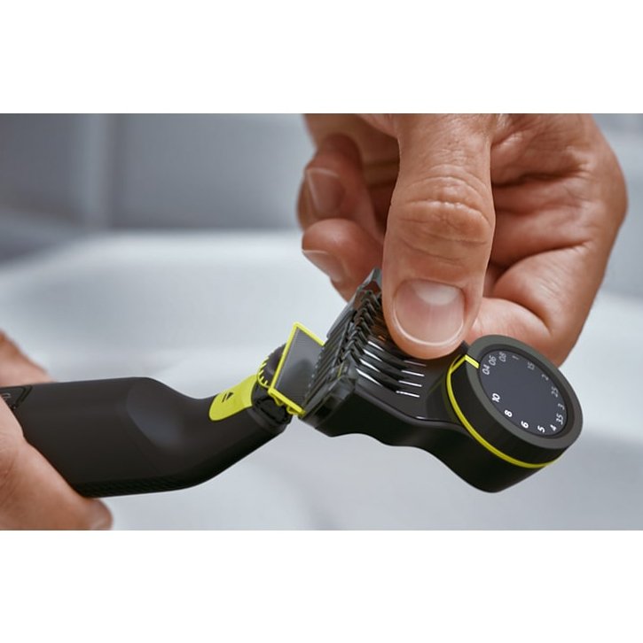 ماشین اصلاح فیلیپس QP6542/15 مجهز به فناوری OneBlade، تیغه استیل ضد زنگ، سیستم محافظت دوگانه، شانه قابل تنظیم 14 درجه و شانه 3 میلی متر می باشد.