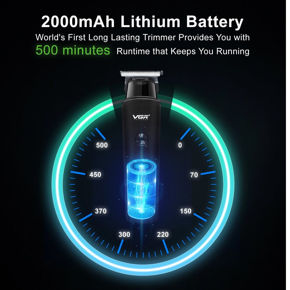 ماشین اصلاح وی جی آر V-933 دارای باتری لیتیوم یون 2000mah، موتور 8500rpm، تیغه استیل، تکنولوژی برش مستقیم، 3 شانه مختلف، نمایشگر LED و عملکرد ضد آب می باشد.