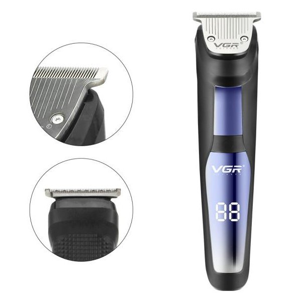 ماشین اصلاح وی جی آر VGR V-292 دارای فناوری ضد آب IPX5، تیغه خودتیزشونده، نمایشگر LED، عملکرد بی سیم و باسیم، باتری 600mah، خط زن، صفر زن و 3 شانه متنوع است.