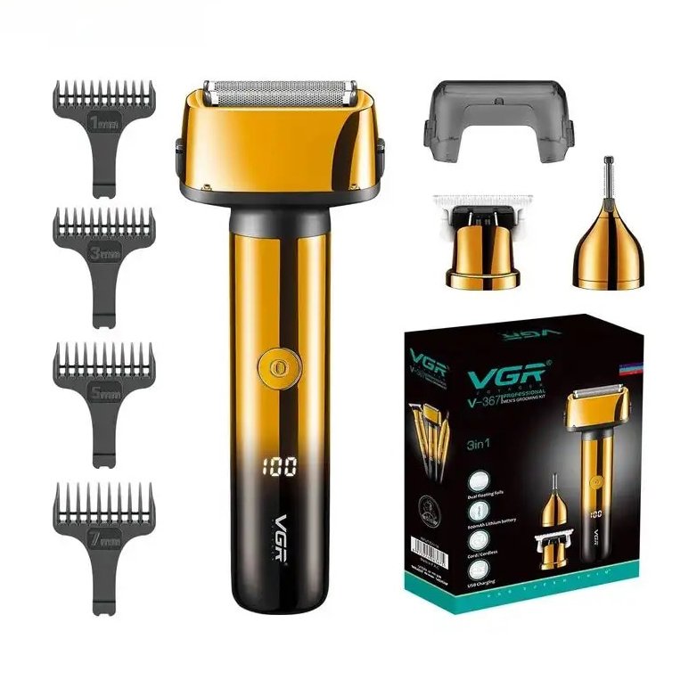ماشین اصلاح وی جی آر مدل V-367 که با عنوان ماشین اصلاح سه کاره وی جی آر نیز شناخته می شود، با سه عملکرد شیور علتکی، خط زن و مو زن بینی قادر است تمام موهای سر، صورت و بدن را اصلاح کند و تجربه ای بی نقص و بدون کشیدگی مو، خراش و بریدگی را به همراه داشته باشد. این مدل به باتری لیتیوم یونی 600 میلی آمپر ساعت مجهز شده تا به مدت 90 دقیقه در شارژ بماند و همچنین 90 دقیقه بدون وقفه اصلاح را انجام دهد.