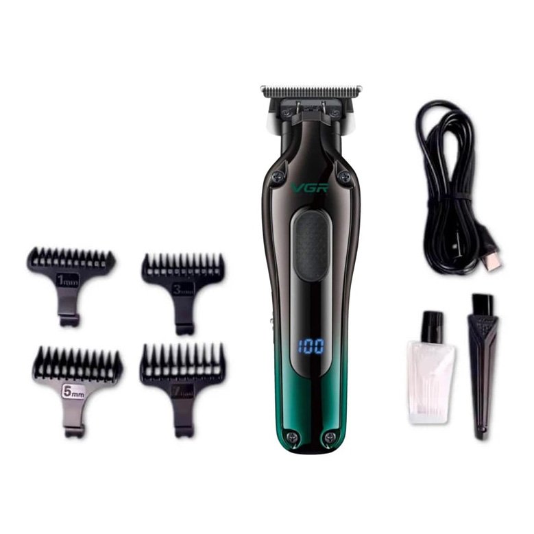 ماشین اصلاح وی جی آر VGR V-998 دارای قابلیت استفاده زیر دوش، تیغه استیل، 4 شانه، باتری لیتیوم یون 1200mah، نشانگر باتری، صفرزن، خط زن و تکنولوژی اصلاح تریم است.