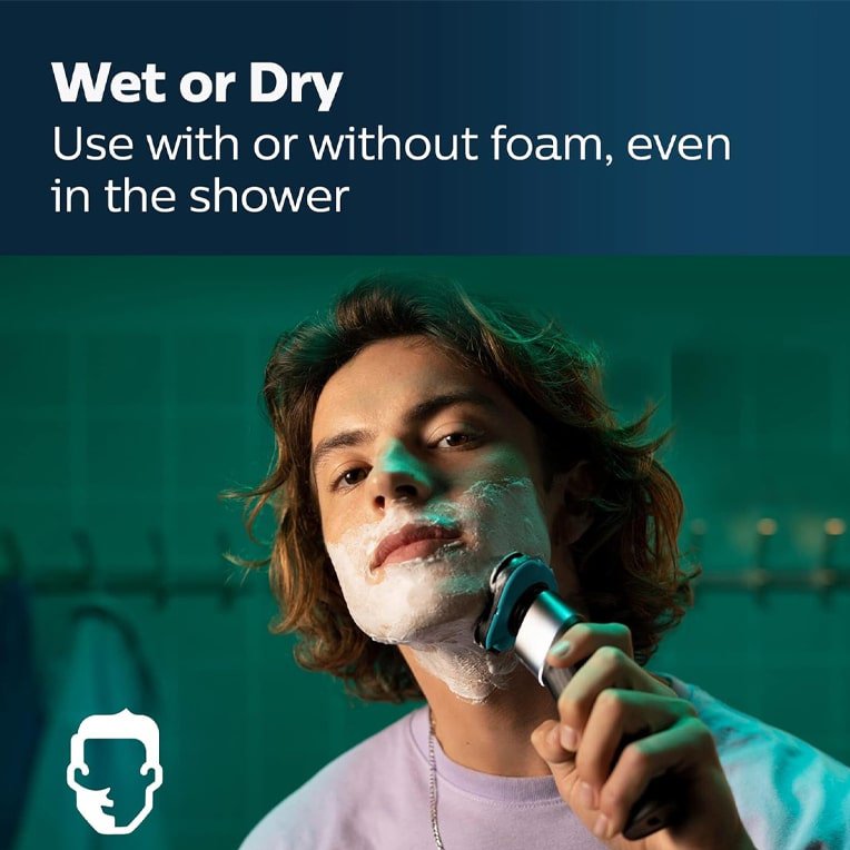سری 5000 – جنس بدنه پلاستیک – گواهی ضد آب IPX7 – سری منعطف 360 درجه – تیغه SH30 – درپوش ایمنی پلاستیکی – حلقه های SkinGlide – سری گرد جهت ایجاد راحتی و به حداقل رساندن میزان آسیب به پوست – سری ریش تراش – باتری لیتیوم یون Li-Ion – کابل شارژ USB-A – توان 4.5 وات – قفل مسافرتی – نمایشگر شارژ باتری – باز شدن سری دستگاه با یک فشار برای شستشو |