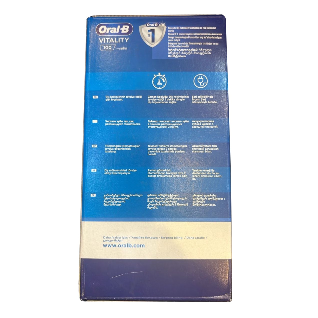 مسواک برقی اورال بی Vitality D100 مجهز به باتری Ni-MH، استند شارژ، سرعت موتور 5600 دور بر دقیقه، سری Cross Action، فناوری نظافت عمیق دندان و ماساژ لثه می باشد.