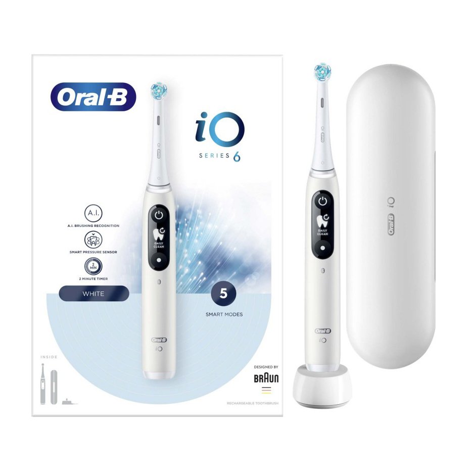 مسواک برقی هوشمند اورال بی IO6 یکی از جدیدترین و پیشرفته ترین محصولات برند معتبر Oral-B است که تجربه ای کاملاً متفاوت از مسواک زدن را ارائه می دهد. این مسواک برقی با ترکیب فناوری هوشمند و طراحی ارگونومیک، بهگونه ای ساخته شده تا هم از نظر سلامت دهان و دندان و هم از نظر راحتی استفاده، رضایت کاربران را جلب کند. موتور مغناطیسی نسل جدید iO6 حرکاتی بسیار نرم و در عین حال مؤثر ایجاد می کند و با نوسانات میکروسکوپی، پلاک های دندانی را با دقت بالا از بین می برد.