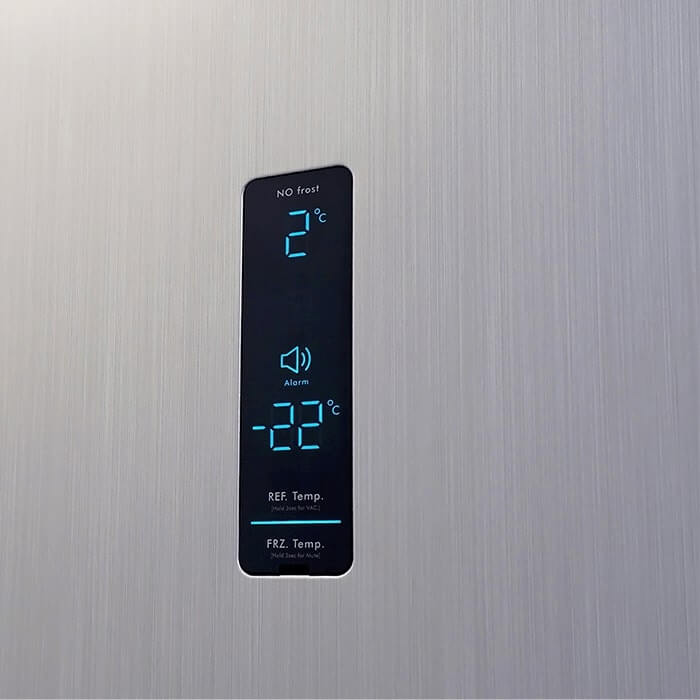 یخچال فریزر دوو مدل 2210 به 6 عدد سنسور داخلی برای سنجش دقیق دما و حسگر تنظیم دمای بیرونی مجهز بوده و باعث ثابت ماندن دمای مواد غذایی و کاهش میزان مصرف انرژی شود. گفتنی است که سیستم هشدار باز ماندن درب نیز به شما کمک می کند تا در صورت باز ماندن درب یخچال یا فریزر با بوق هشدار شما را از آن مطلع و از هدررفت انرژی و سرمای درون محفظه جلوگیری نماید.